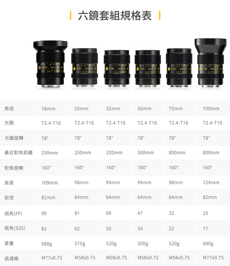 COOKE SP3 全片幅球面定焦鏡頭六鏡套組