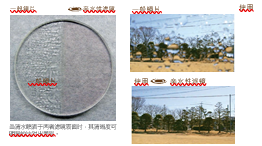 ?當水噴灑在濾鏡時(shí),會(huì )于鏡面形成一層水薄膜而非水滴狀顆粒(如右圖)。此鍍膜能使鏡片無(wú)論在任何天氣