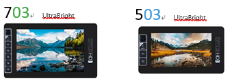 smallHD 703 / 503: 7吋及5吋超高亮度2500尼特的 Full HD 監視螢幕支援HDMI / SDI 輸入以及輸出,且符合HDR規范標準提供70%的NTSC色域支援。